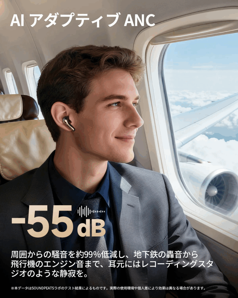 | ノイズキャンセリング | 最大 -55dB(AIアダプティブANC) |