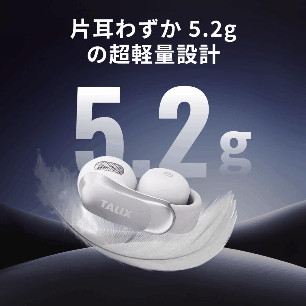 5.2gといってもピンとこないかもしれません。これは、およそA4コピー用紙1枚分、あるいは100円玉1枚とほぼ同じ重さです。 耳に乗せている感覚がほとんどないため、ユーザーレビューでも「つけているのを忘れて、あわてて探してしまった」「着けたまま寝落ちしてしまった」という声が上がるほど。