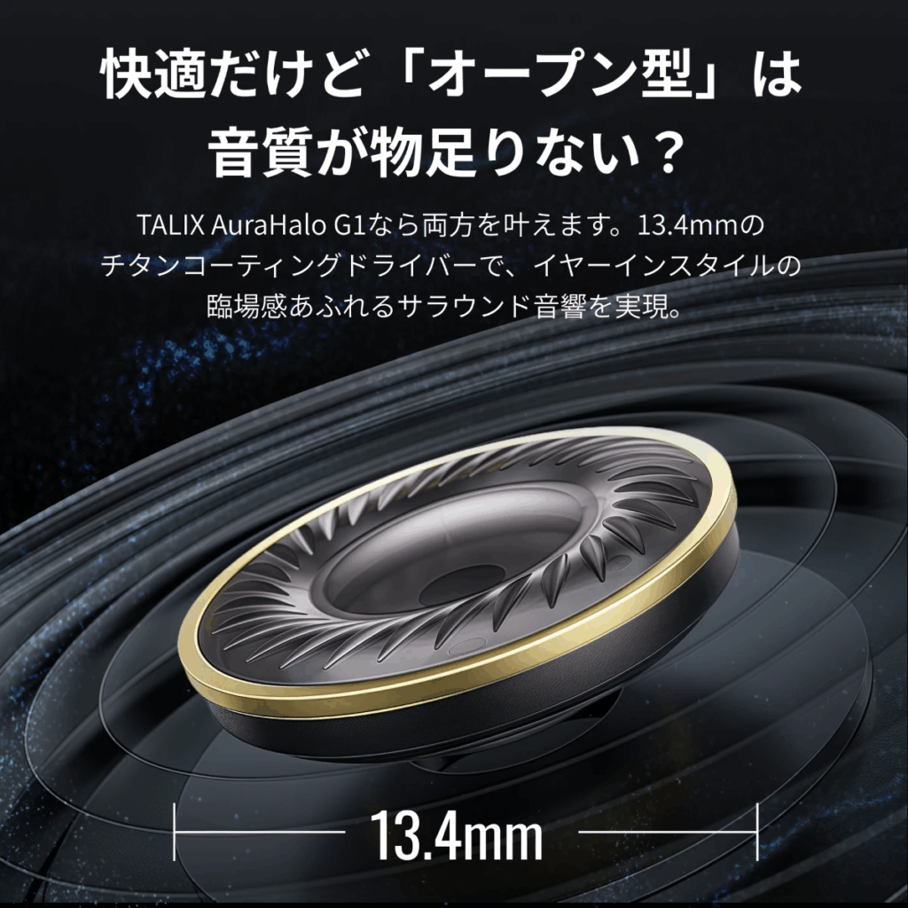 TALIX Aura Halo G1は、公式サイトでの販売価格が1万円台半ば(キャンペーン時はさらに安くなることも!)。 機能面(音質・通話・バッテリー・装着感)でハイエンド機に肉薄しながら、価格は約半分。これを「コスパ最強」と呼ばずして何と呼ぶでしょうか。
