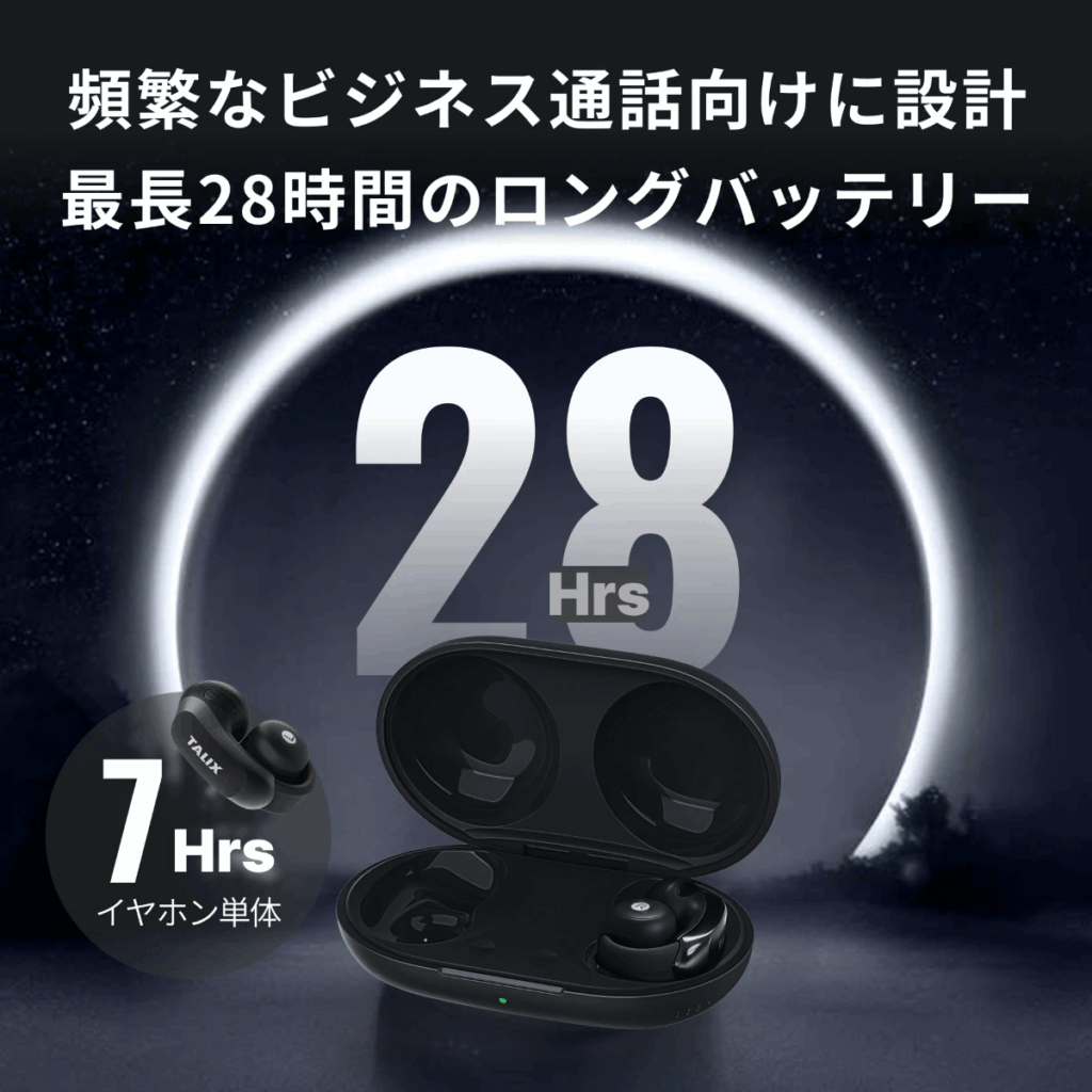 イヤホン単体で約7時間の連続再生が可能です。充電ケースを併用すれば最大約28時間。 1日の勤務時間が8時間として、ランチ休憩中にケースに戻せば、バッテリー切れの心配はまずありません。数千円の安価なモデルだと「公称4時間(実際は2時間)」ということもザラにありますが、このスタミナは頼もしい限りです。