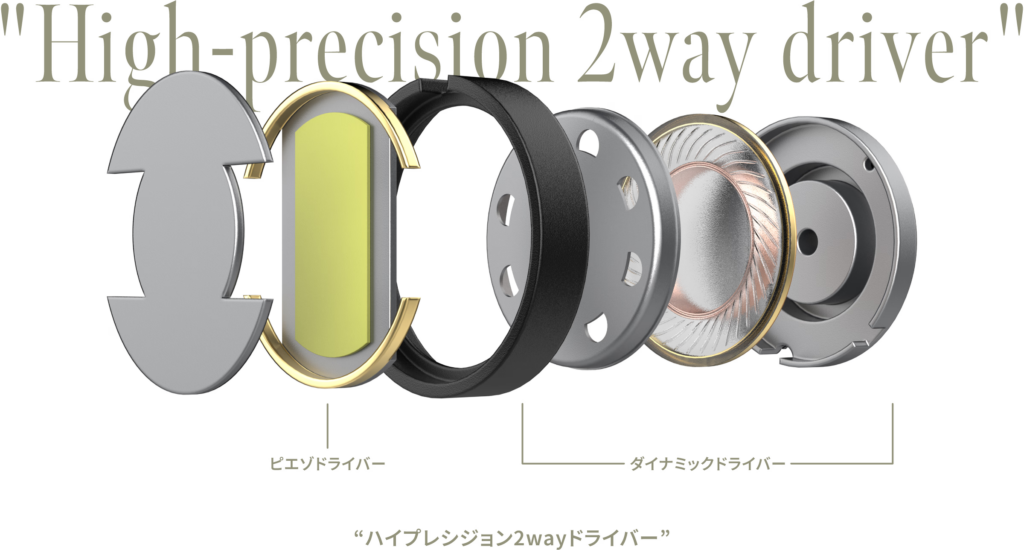 TE-J2の武器は、異なる駆動方式のドライバーを組み合わせた「ハイブリッド構成」です。