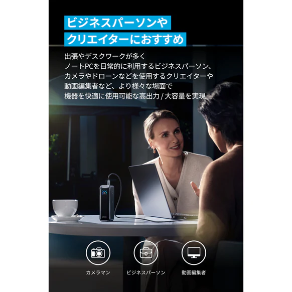 スタバでも、新幹線の座席でも、公園のベンチでも。このバッテリーがバッグに入っているだけで、「電源を確保しなければ」というプレッシャーから完全に解放されます。特に、電源のない会議室での長時間ミーティングなどでは、周囲から羨望の眼差しを向けられることでしょう。