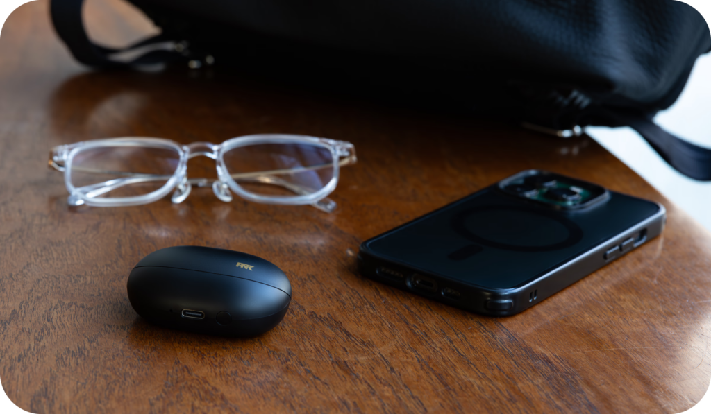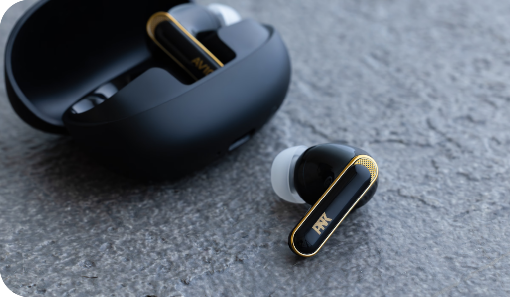 ケースは驚くほどコンパクトで、手のひらにすっぽりと収まります。ブラックのボディにゴールドのアクセントを効かせた配色は、ピヤホンシリーズ伝統のデザイン。1万円以下にありがちな「プラスチックの安っぽさ」は一切感じられず、むしろラグジュアリーな雰囲気すら漂います。